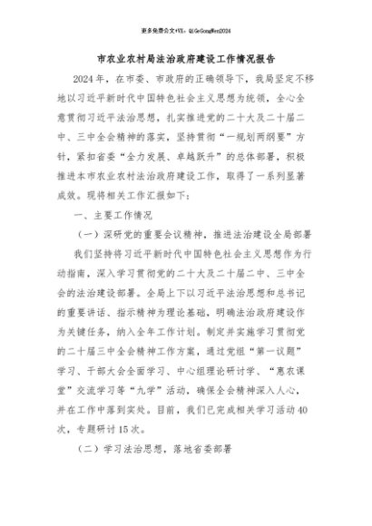 / 【七哥公文】2024年:市农业农村局法治政府建设工作情况报告+更多免费公文+VX:QiGeGongWen2024