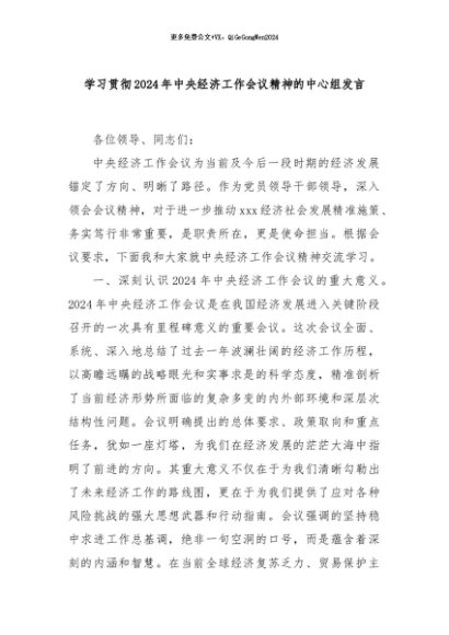 【七哥公文】2024年:学习贯彻2024年中央经济工作会议精神的中心组发言+更多免费公文+VX:QiGeGongWen2024