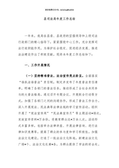 / 【七哥公文】2024年:县司法局年度工作总结+更多免费公文+VX:QiGeGongWen2024
