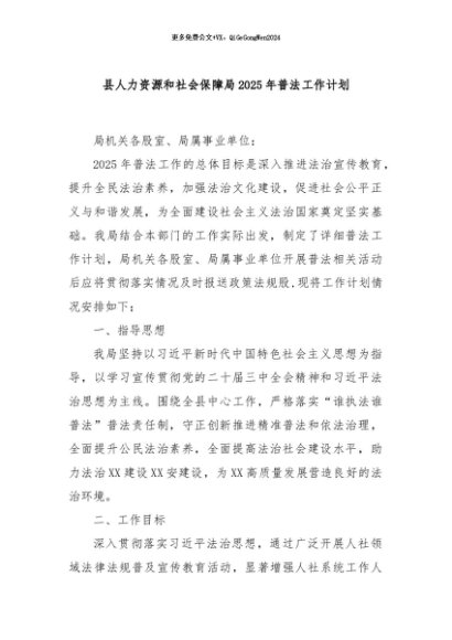 / 【七哥公文】2024年:县人力资源和社会保障局2025年普法工作计划+更多免费公文+VX:QiGeGongWen2024