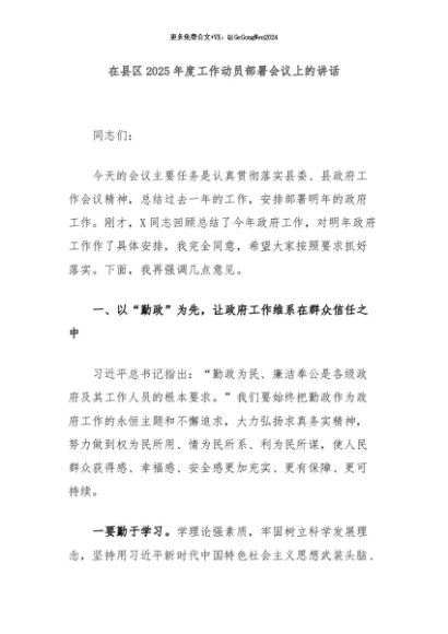 / 【七哥公文】2024年:在县区2025年度工作动员部署会议上的讲话+更多免费公文+VX:QiGeGongWen2024