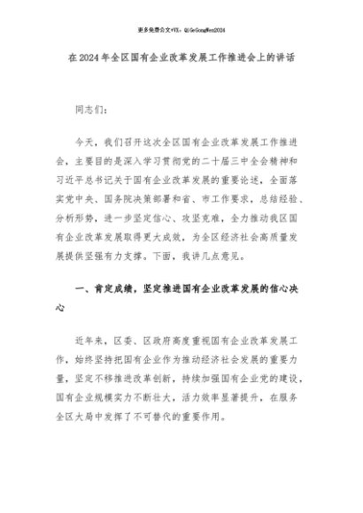 【七哥公文】2024年:在2024年全区国有企业改革发展工作推进会上的讲话+更多免费公文+VX:QiGeGongWen2024