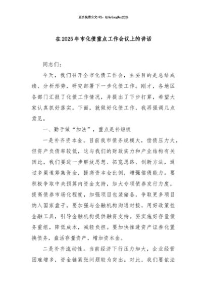 / 【七哥公文】2024年:在2025年市化债重点工作会议上的讲话+更多免费公文+VX:QiGeGongWen2024