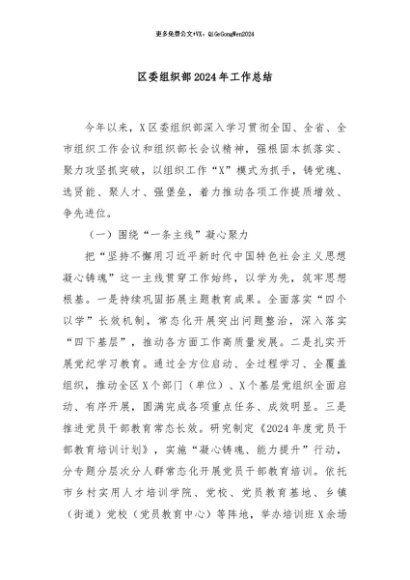 / 【七哥公文】2024年:区委组织部2024年工作总结+更多免费公文+VX:QiGeGongWen2024