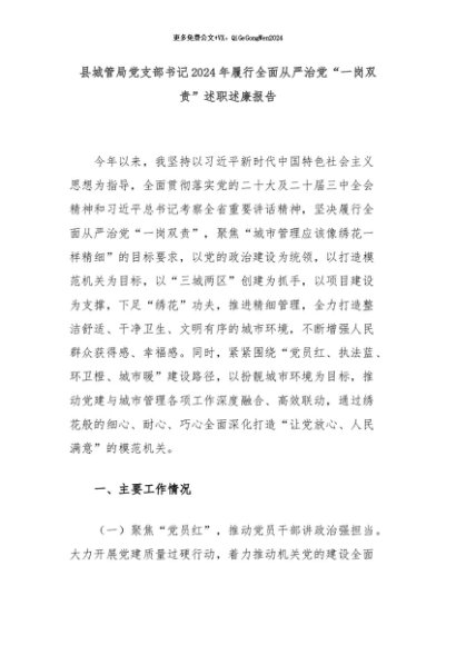 【七哥公文】2024年:县城管局党支部书记2024年履行全面从严治党“一岗双责”述职述廉报告+更多免费公文+VX:QiGeGongWen2024