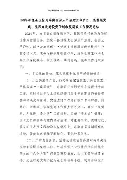 【七哥公文】2024年:2024年度县医保局落实全面从严治党主体责任、抓基层党建、党风廉政建设责任制和反腐败工作情况总结+更多免费公文+VX:QiGeGongWen2024