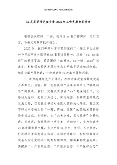 / 【七哥公文】2024年:Xx县县委书记在全市2025年工作务虚会的发言+更多免费公文+VX:QiGeGongWen2024