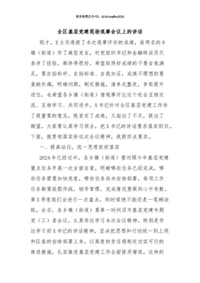 / 【七哥公文】2024年:全区基层党建现场观摩会议上的讲话+更多免费公文+VX:QiGeGongWen2024
