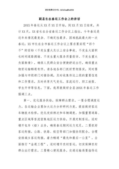 / 【七哥公文】2024年:副县长在春运工作会上的讲话+更多免费公文+VX:QiGeGongWen2024
