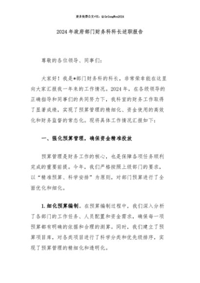 / 【七哥公文】2024年:2024年政府部门财务科科长述职报告+更多免费公文+VX:QiGeGongWen2024