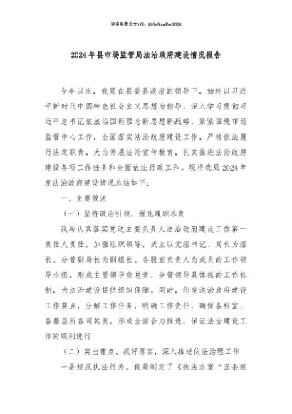 / 【七哥公文】2024年:2024年县市场监管局法治政府建设情况报告+更多免费公文+VX:QiGeGongWen2024