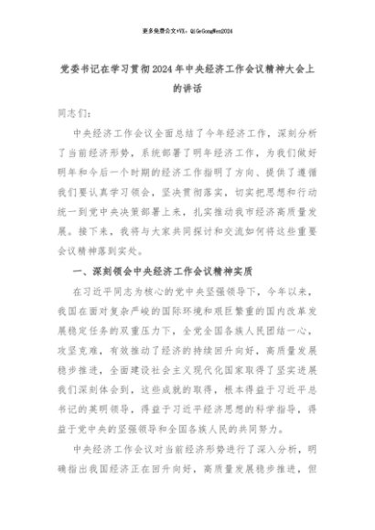 【七哥公文】2024年:党委书记在学习贯彻2024年中央经济工作会议精神大会上的讲话+更多免费公文+VX:QiGeGongWen2024
