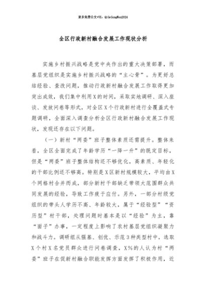 / 【七哥公文】2024年:全区行政新村融合发展工作现状分析+更多免费公文+VX:QiGeGongWen2024