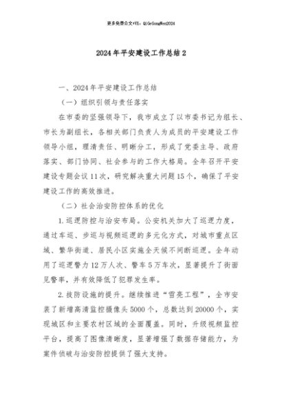 / 【七哥公文】2024年:2024年平安建设工作总结2+更多免费公文+VX:QiGeGongWen2024