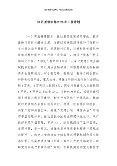 / 【七哥公文】2024年:XX区委组织部2025年工作计划+更多免费公文+VX:QiGeGongWen2024