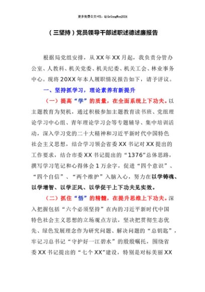 / 【七哥公文】2024年:(三坚持)党员领导干部述职述德述廉报告+更多免费公文+VX:QiGeGongWen2024
