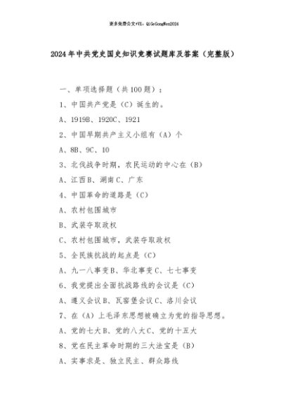 【七哥公文】2024年:2024 年中共党史国史知识竞赛试题库及答案(完整版)+更多免费公文+VX:QiGeGongWen2024