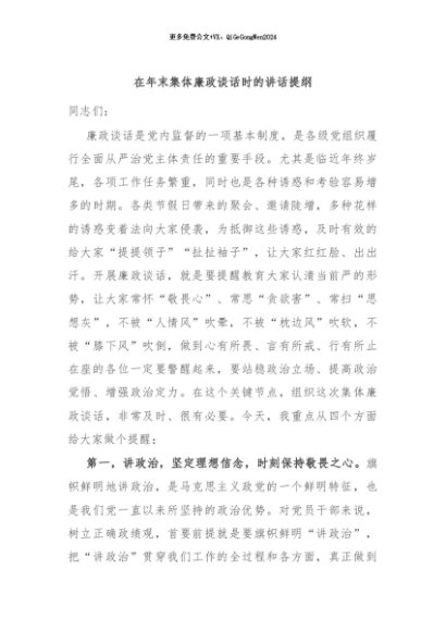 / 【七哥公文】2024年:在年末集体廉政谈话时的讲话提纲+更多免费公文+VX:QiGeGongWen2024