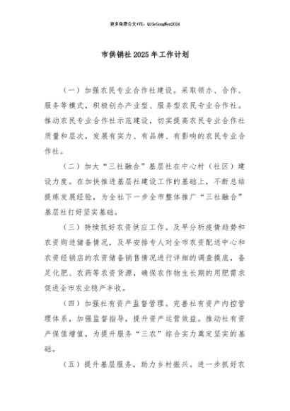 / 【七哥公文】2024年:市供销社2025年工作计划+更多免费公文+VX:QiGeGongWen2024