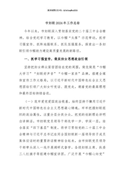 / 【七哥公文】2024年:市妇联2024年工作总结+更多免费公文+VX:QiGeGongWen2024