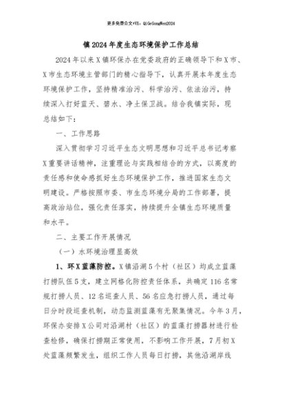/ 【七哥公文】2024年:镇2024年度生态环境保护工作总结+更多免费公文+VX:QiGeGongWen2024