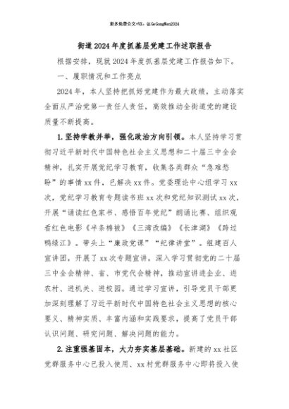 / 【七哥公文】2024年:街道2024年度抓基层党建工作述职报告+更多免费公文+VX:QiGeGongWen2024