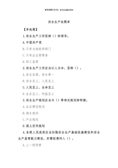 / 【七哥公文】2024年:安全生产法题库+更多免费公文+VX:QiGeGongWen2024