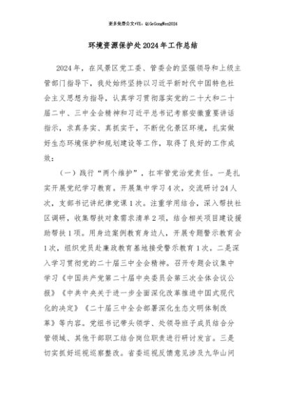 / 【七哥公文】2024年:环境资源保护处2024年工作总结+更多免费公文+VX:QiGeGongWen2024