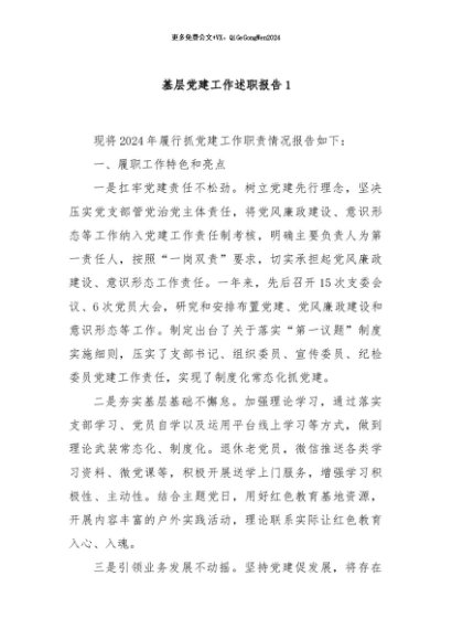 【七哥公文】2024年:基层党建工作述职报告2+更多免费公文+VX:QiGeGongWen2024