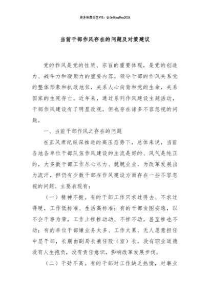 / 【七哥公文】2024年:当前干部作风存在的问题及对策建议+更多免费公文+VX:QiGeGongWen2024