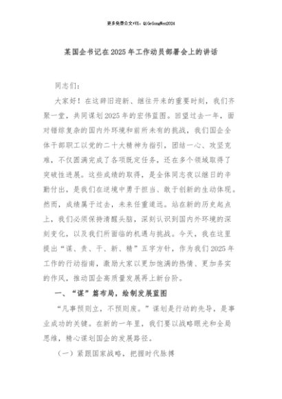 / 【七哥公文】2024年:某国企书记在2025年工作动员部署会上的讲话+更多免费公文+VX:QiGeGongWen2024