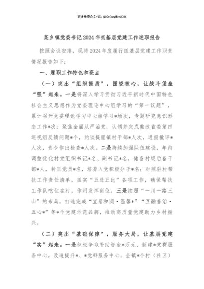 / 【七哥公文】2024年:某乡镇党委书记2024年抓基层党建工作述职报告+更多免费公文+VX:QiGeGongWen2024