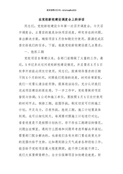 / 【七哥公文】2024年:在党校新校建设调度会上的讲话+更多免费公文+VX:QiGeGongWen2024