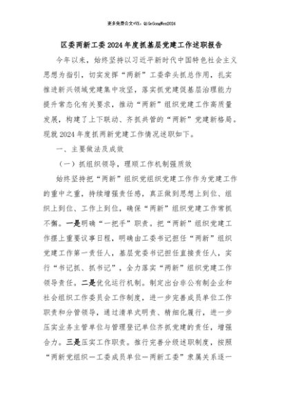 / 【七哥公文】2024年:区委两新工委2024年度抓基层党建工作述职报告+更多免费公文+VX:QiGeGongWen2024