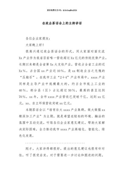/ 【七哥公文】2024年:在政企茶话会上的主持讲话+更多免费公文+VX:QiGeGongWen2024