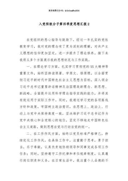 / 【七哥公文】2024年:入党积极分子第四季度思想汇报2+更多免费公文+VX:QiGeGongWen2024