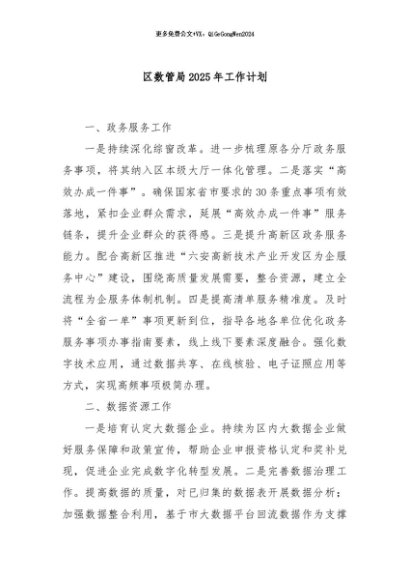 / 【七哥公文】2024年:区数管局2025年工作计划+更多免费公文+VX:QiGeGongWen2024