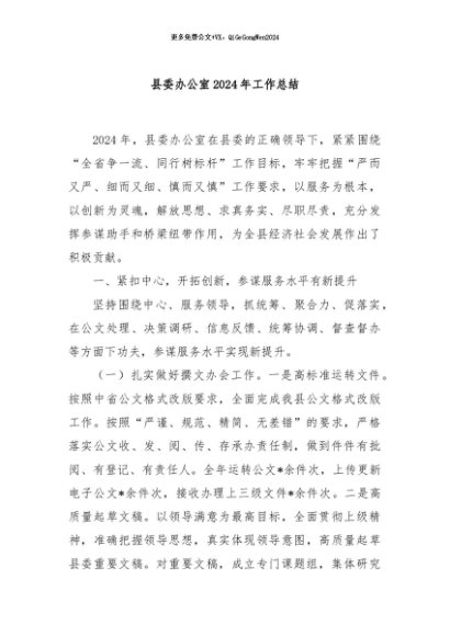 / 【七哥公文】2024年:县委办公室2024年工作总结+更多免费公文+VX:QiGeGongWen2024