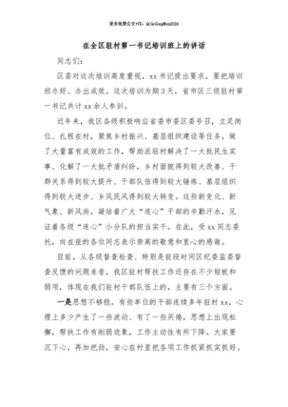 / 【七哥公文】2024年:在全区驻村第一书记培训班上的讲话+更多免费公文+VX:QiGeGongWen2024