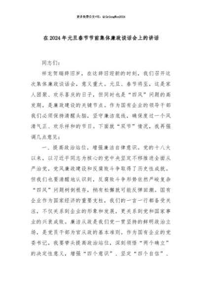 / 【七哥公文】2024年:在2024年元旦春节节前集体廉政谈话会上的讲话+更多免费公文+VX:QiGeGongWen2024