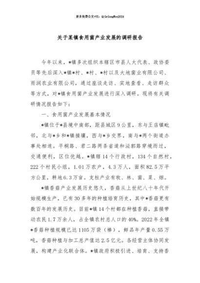 / 【七哥公文】2024年:关于某镇食用菌产业发展的调研报告+更多免费公文+VX:QiGeGongWen2024
