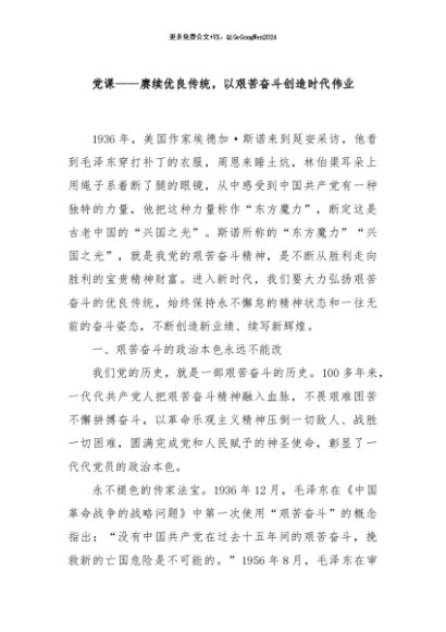 / 【七哥公文】2024年:党课——赓续优良传统,以艰苦奋斗创造时代伟业+更多免费公文+VX:QiGeGongWen2024
