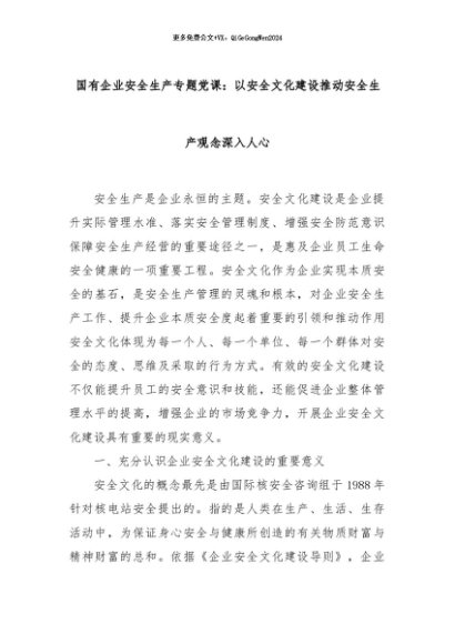 【七哥公文】2024年:国有企业安全生产专题党课:以安全文化建设推动安全生产观念深入人心+更多免费公文+VX:QiGeGongWen2024