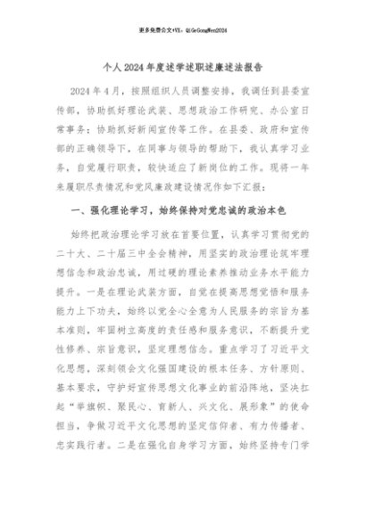 / 【七哥公文】2024年:个人2024年度述学述职述廉述法报告+更多免费公文+VX:QiGeGongWen2024
