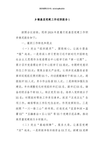 / 【七哥公文】2024年:乡镇基层党建工作述职报告1+更多免费公文+VX:QiGeGongWen2024