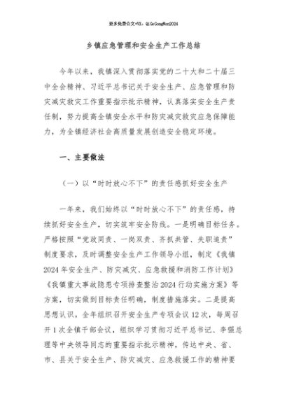 / 【七哥公文】2024年:乡镇应急管理和安全生产工作总结+更多免费公文+VX:QiGeGongWen2024