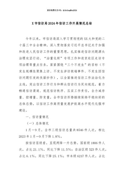 / 【七哥公文】2024年:X市信访局2024年信访工作开展情况总结+更多免费公文+VX:QiGeGongWen2024