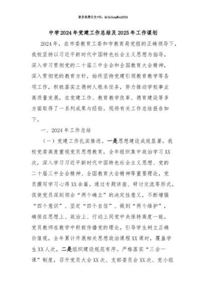 / 【七哥公文】2024年:中学2024年党建工作总结及2025年工作谋划+更多免费公文+VX:QiGeGongWen2024