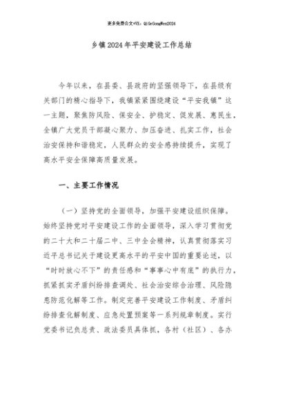 / 【七哥公文】2024年:乡镇2024年平安建设工作总结+更多免费公文+VX:QiGeGongWen2024