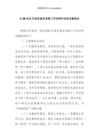 【七哥公文】2024年:Xx镇2024年度抓基层党建工作述职和述责述廉报告+更多免费公文+VX:QiGeGongWen2024